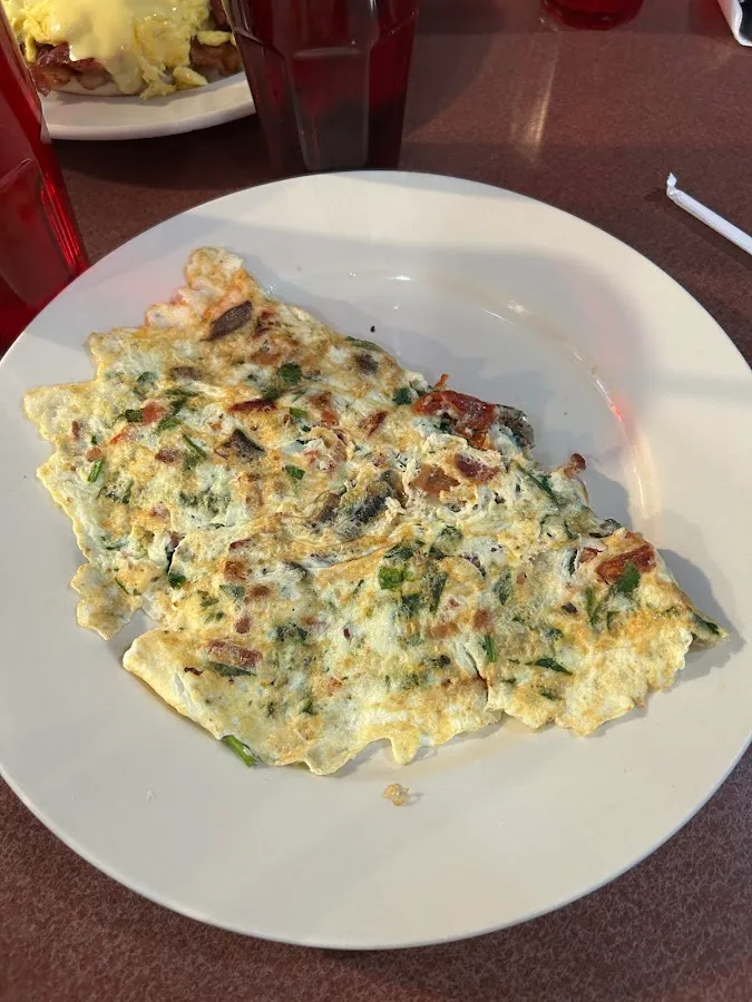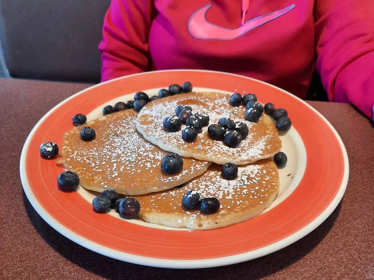 Many omelet variations & pancake styles are on the menu at all-day breakfast spot.