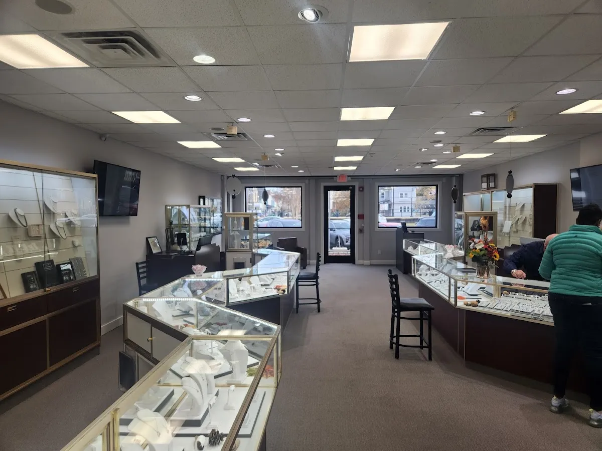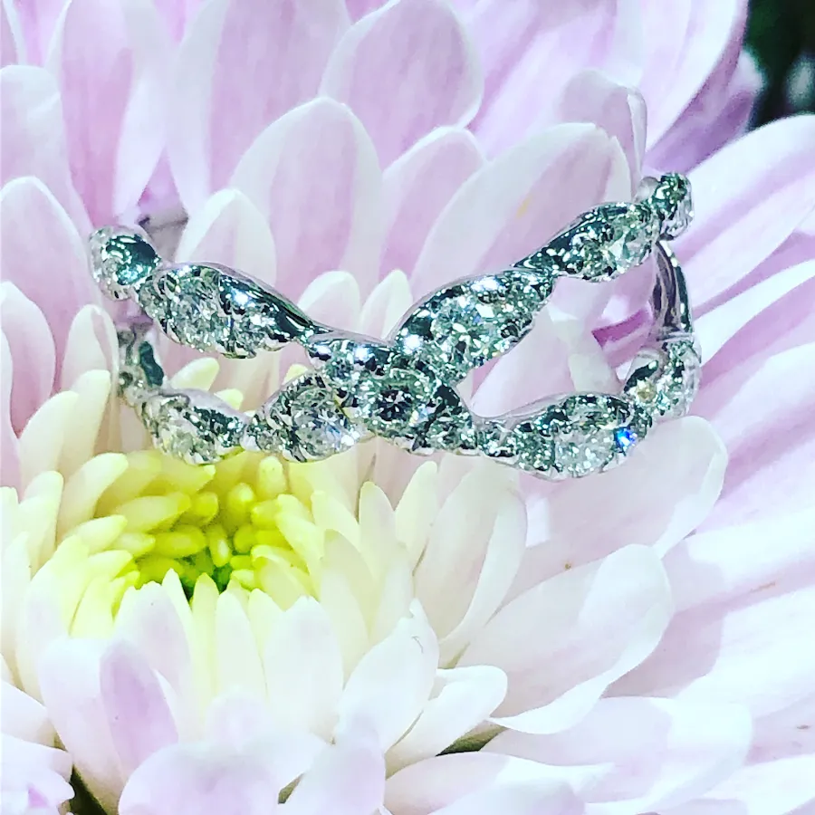Store providing designer diamond jewelry, with ring sizing & pearl restringing.