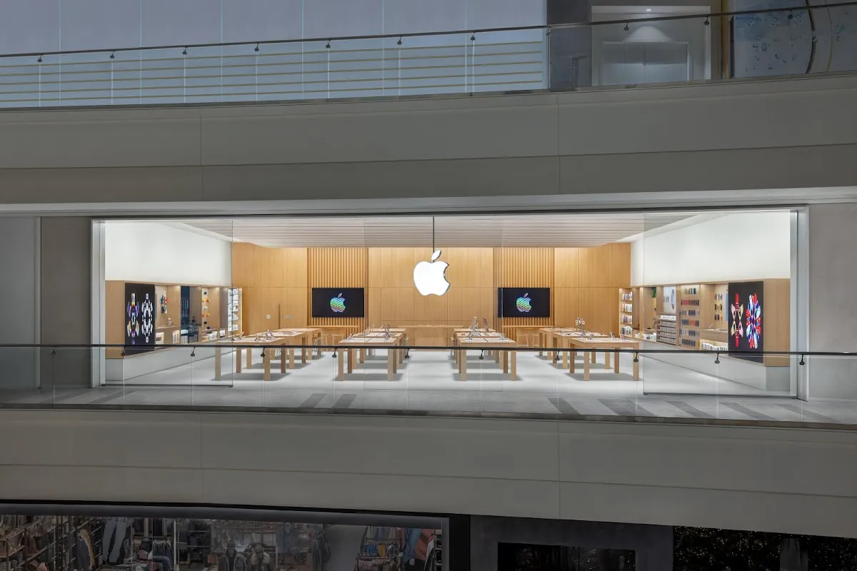 Apple retail store selling iPhones, iPads & more in sleekly designed spaces.