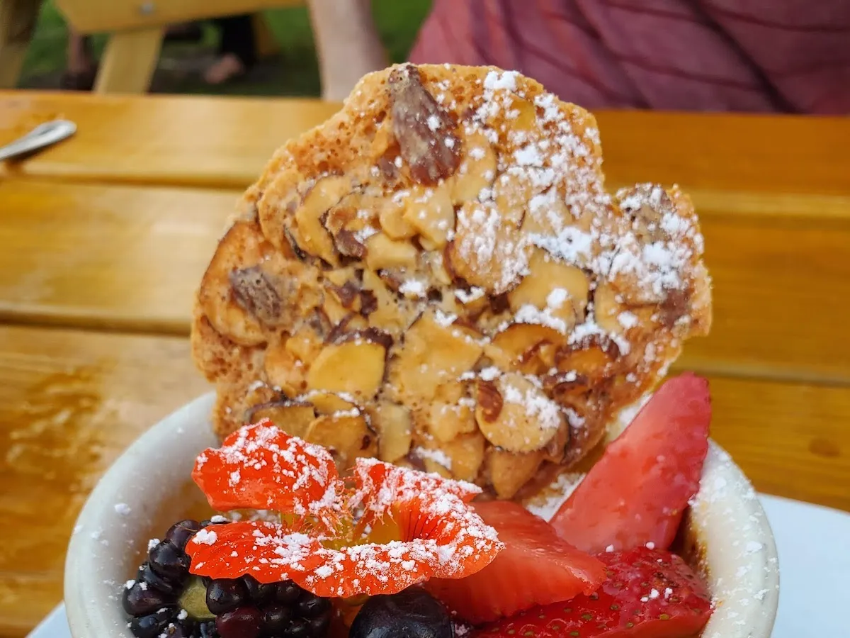 Asian-influenced American BYOB in a gray clapboard house with ceiling fans & framed photographs.