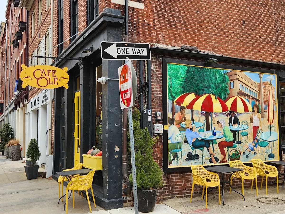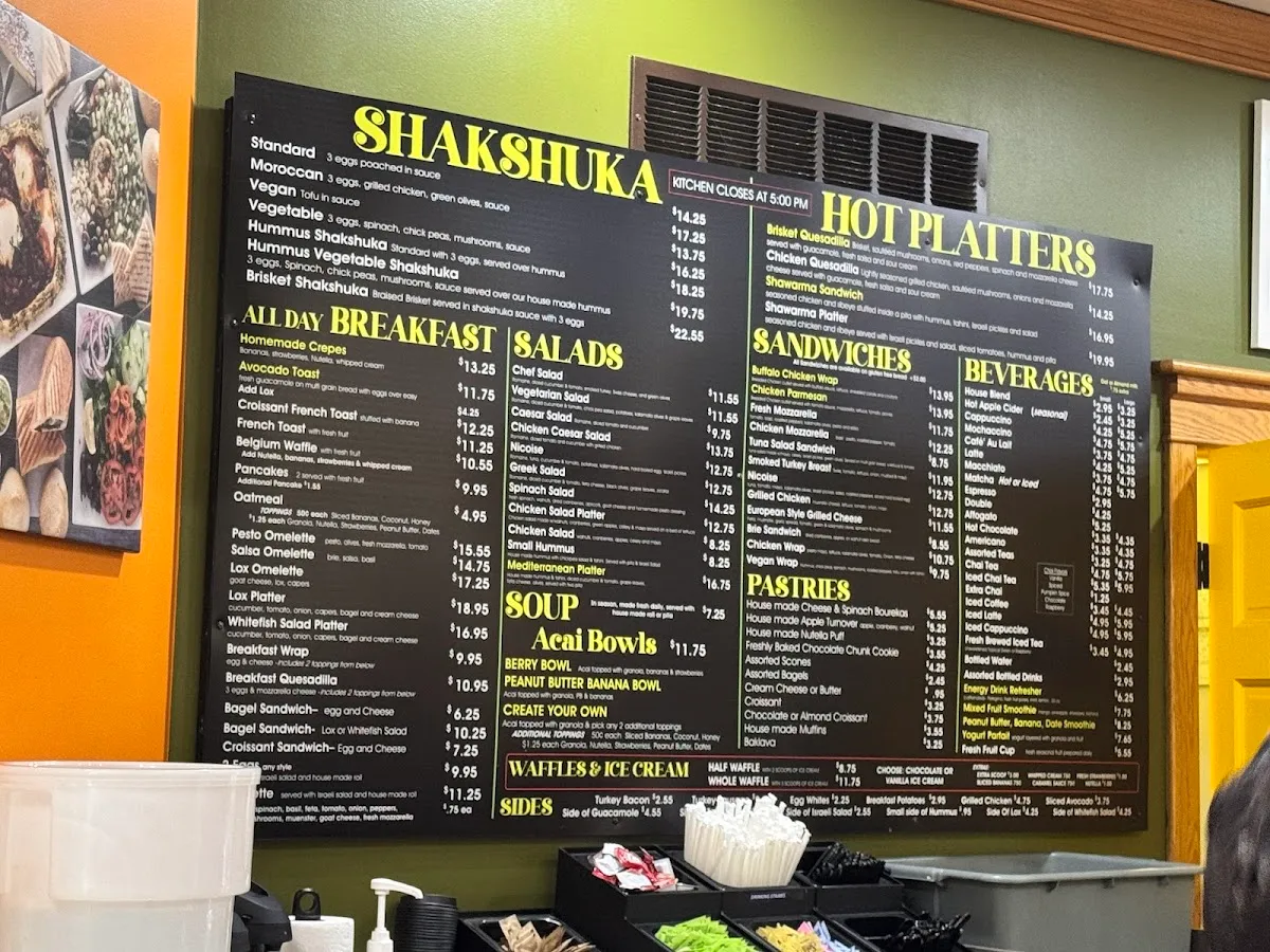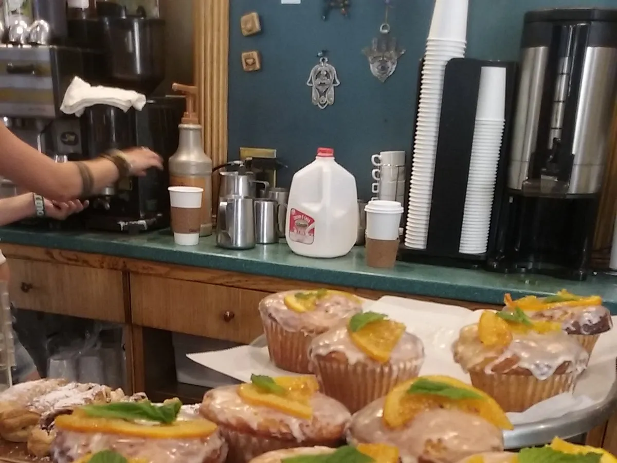 Cozy coffee shop serving snacks & Mediterranean fare within its brightly colored walls.