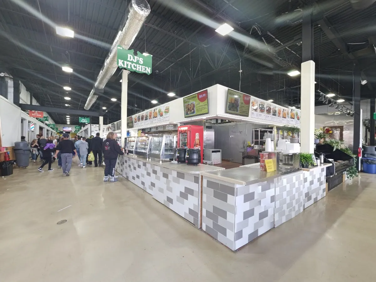Expansive setup with a flea market & retail stalls, plus produce vendors, Amish goods & restaurants.