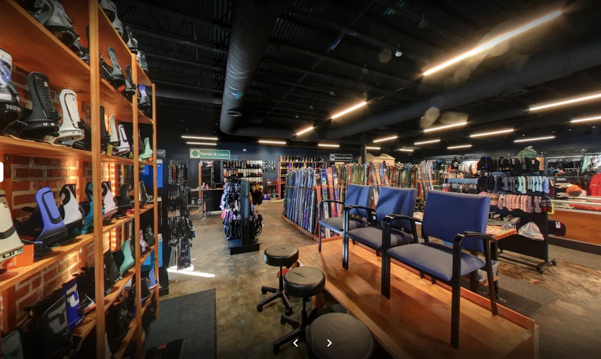 Expansive sporting goods shop featuring ski & snowboard gear, plus bikes & competitive swimwear.