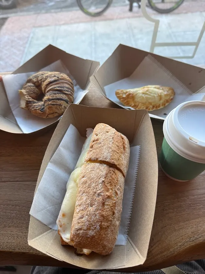 Argentinean bakery/cafe prepping various pastries, cakes & savory items like empanadas & sandwiches.