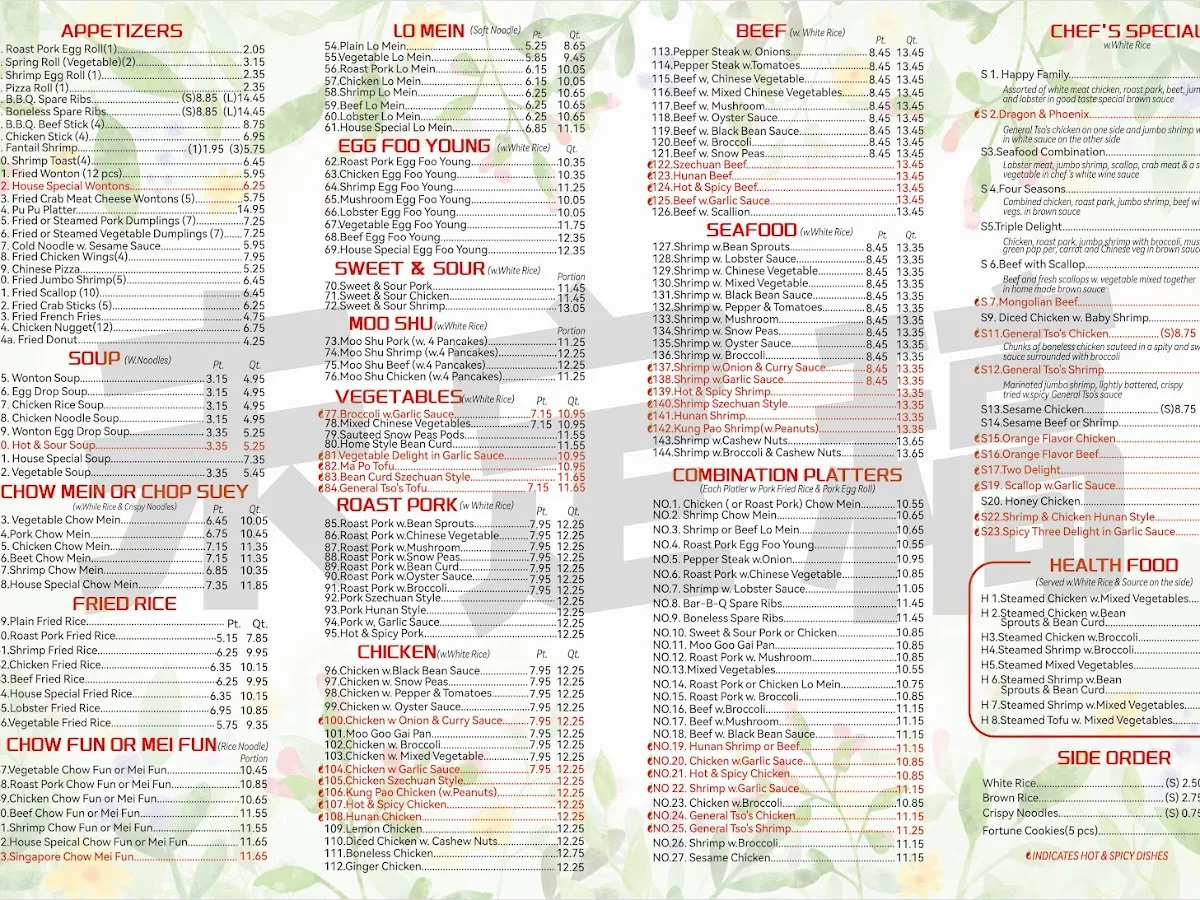 Standard selection of familiar Chinese takeout, including moo goo gai pan & chop suey plus combos.