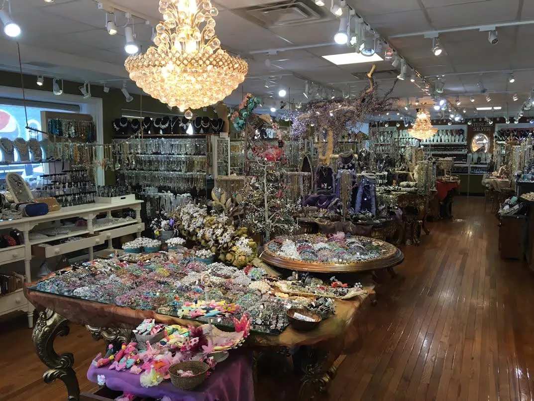 Costume jewelry store featuring baubles in a wide variety of styles in a quaint interior.