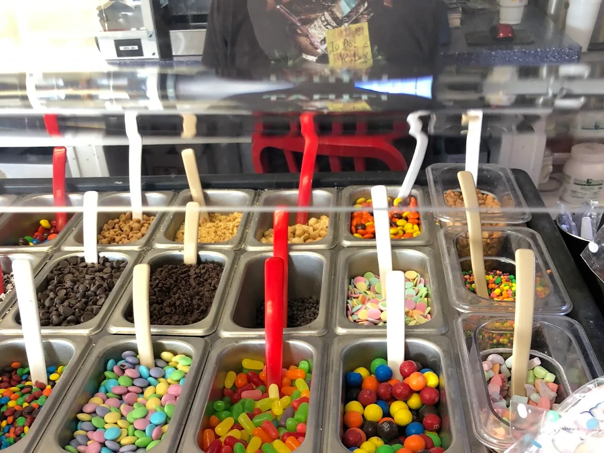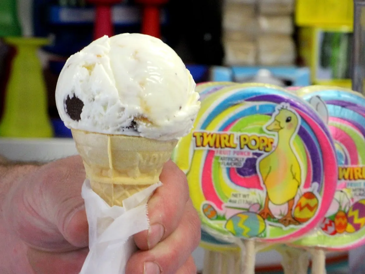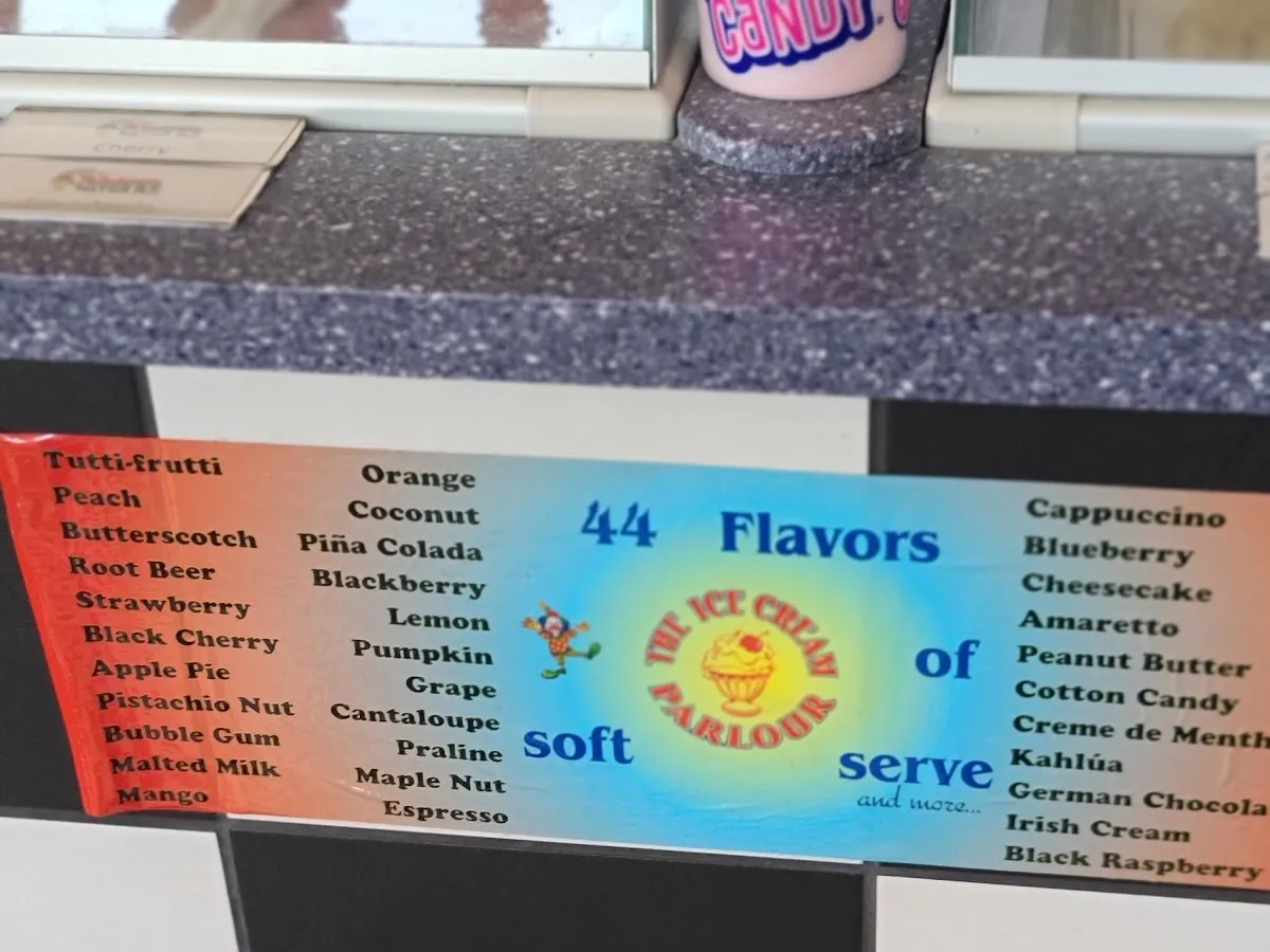 Ice cream in a variety of flavors from a vibrant shop with circus decor & a miniature carnival.