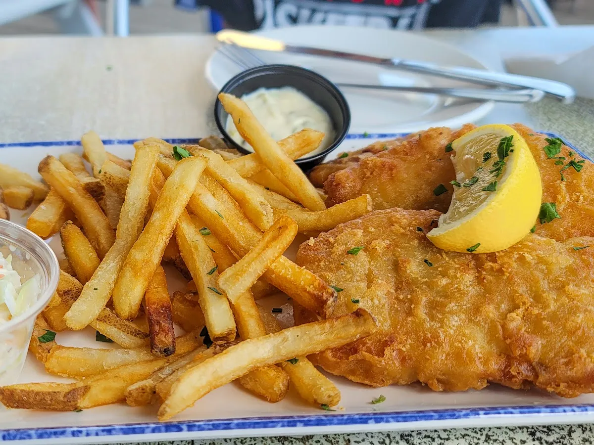 Waterfront seafood shack with old-timey nautical decor & a rooftop bar with boardwalk views.