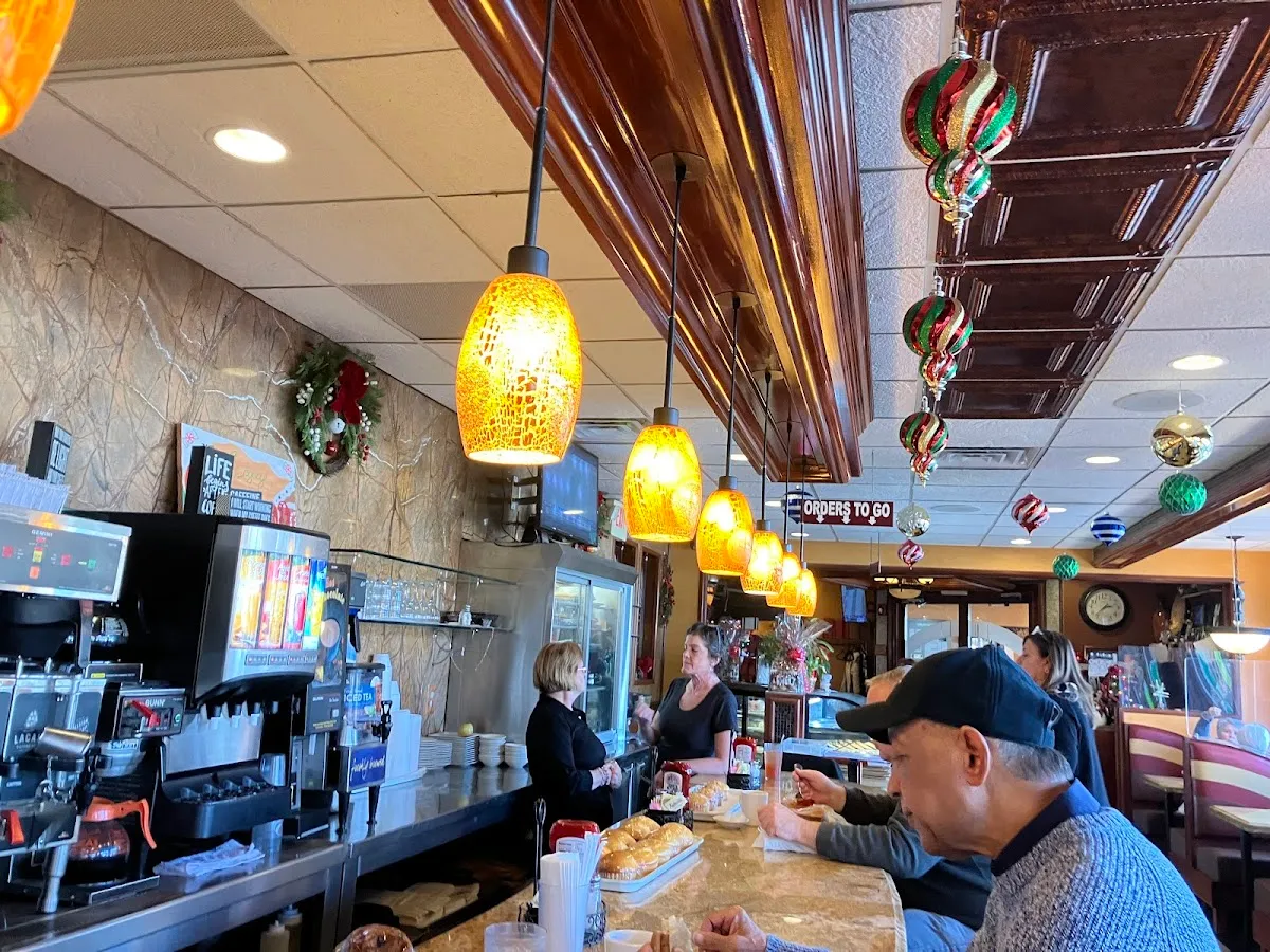 Retro diner setting for comfort-food faves in a relaxed space with old-school display cases.