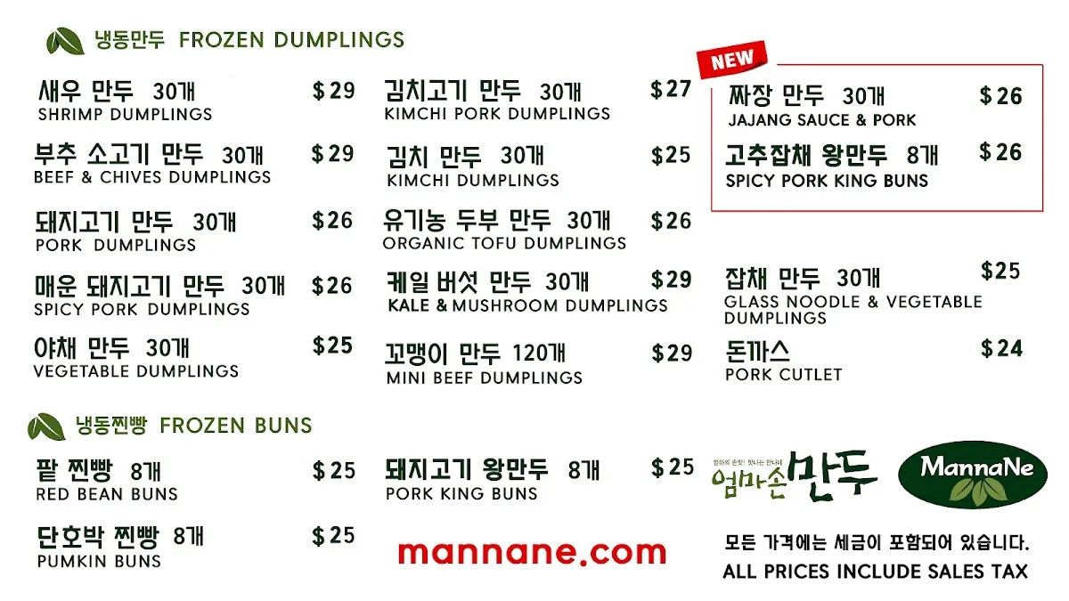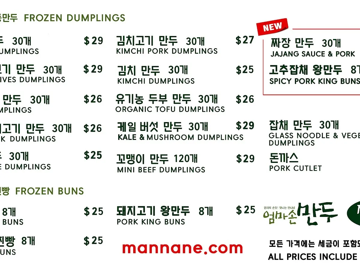 Mannane DUMPLINGS - 엄마손 만두 FORT LEE NJ