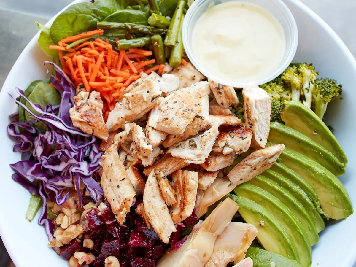 Cozy counter-serve spot with sidewalk seating for health-minded wraps, salads & grass-fed burgers.