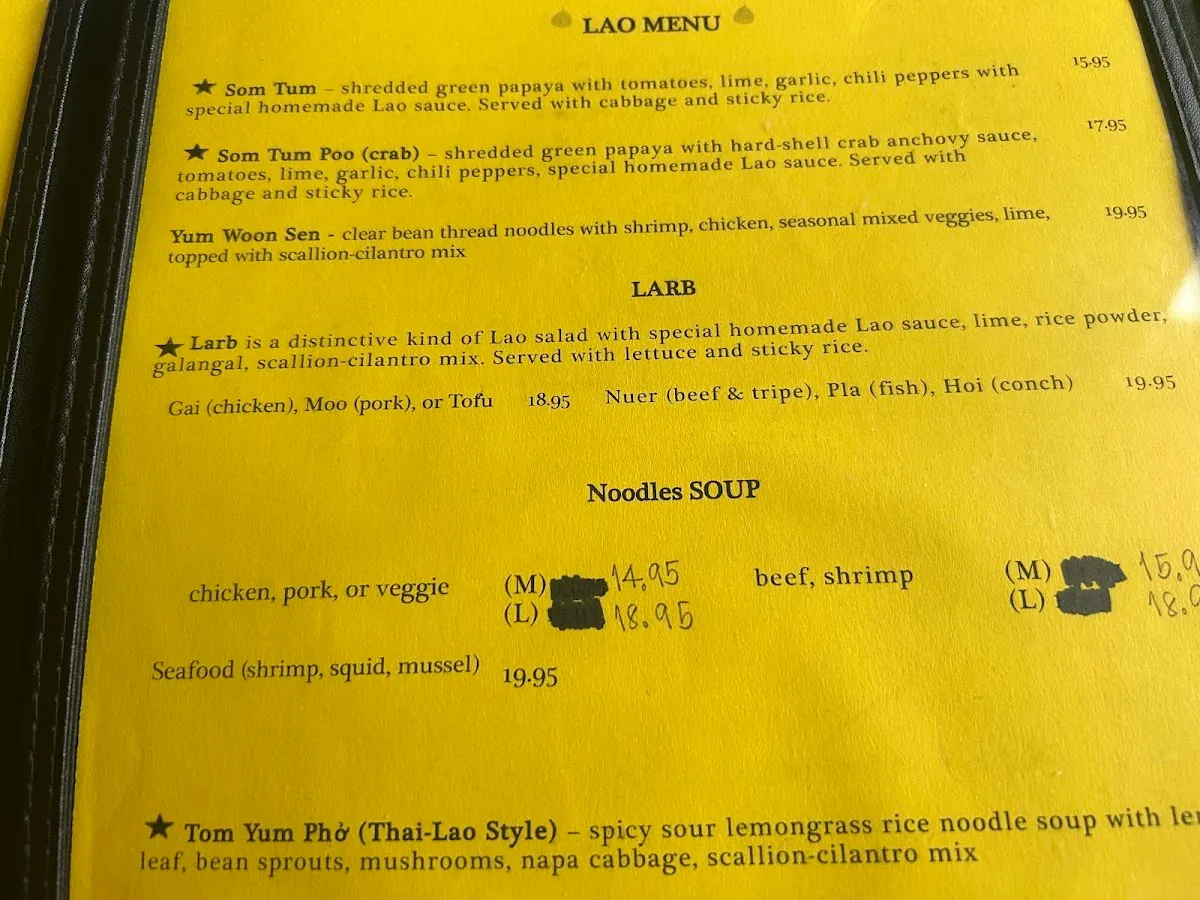 Low-key restaurant serving Thai & Lao cuisine with various spice levels, plus lunch specials.