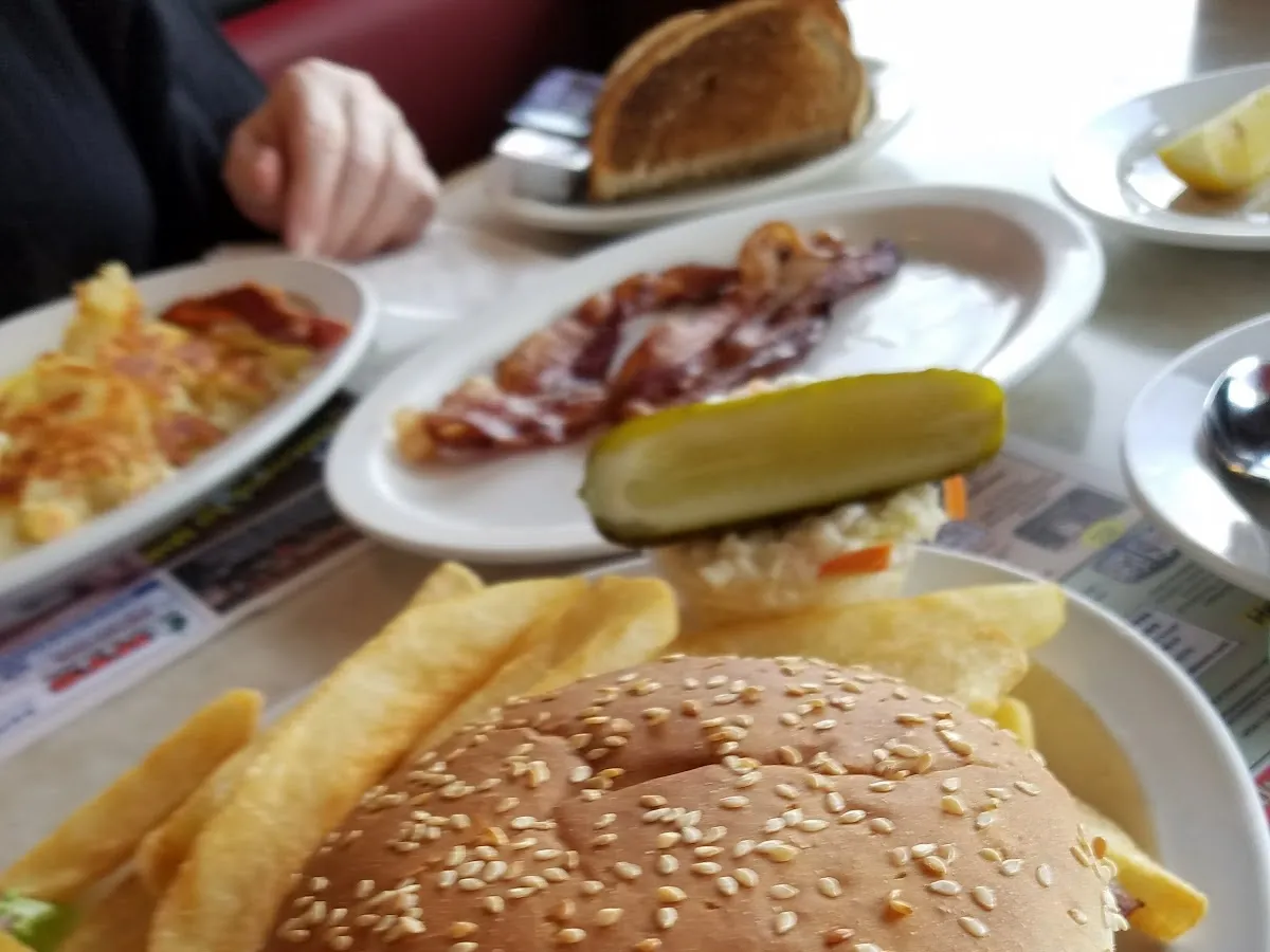 Traditional family-friendly American diner with vinyl booths, jukeboxes & free WiFi, open 24 hours.