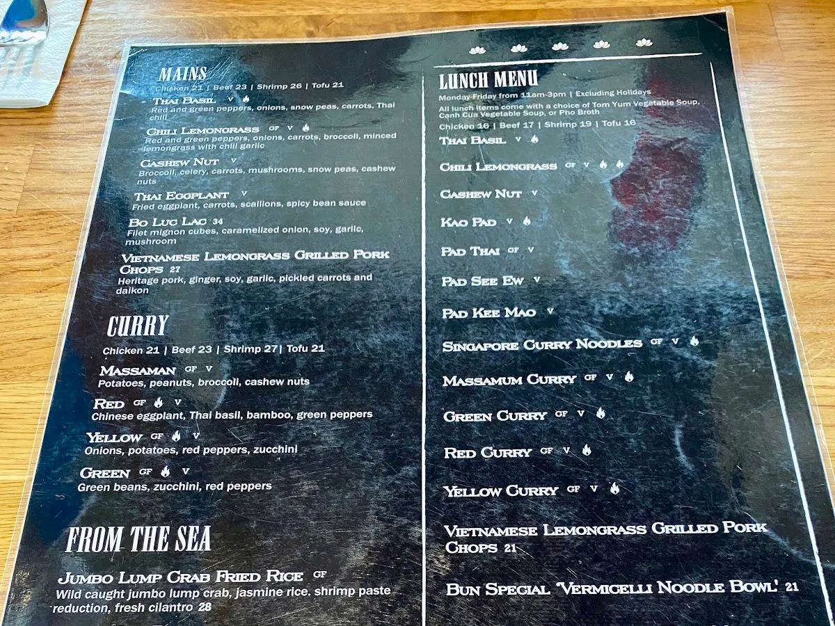 A menu featuring classic Southeast Asian fare in a casual setting with modern, industrial interiors.