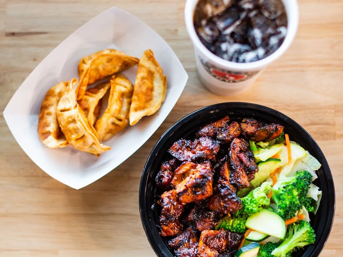 Cheery counter-serve branch doling out rice & noodle bowls with Asian-style proteins & veggies.