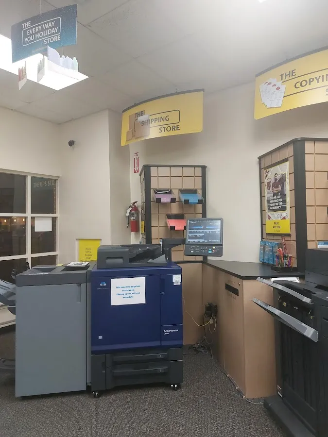 Store offering shipping, packaging, printing & other services, plus office supplies.