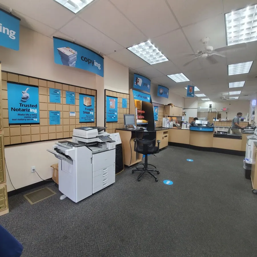 Store offering shipping, packaging, printing & other services, plus office supplies.