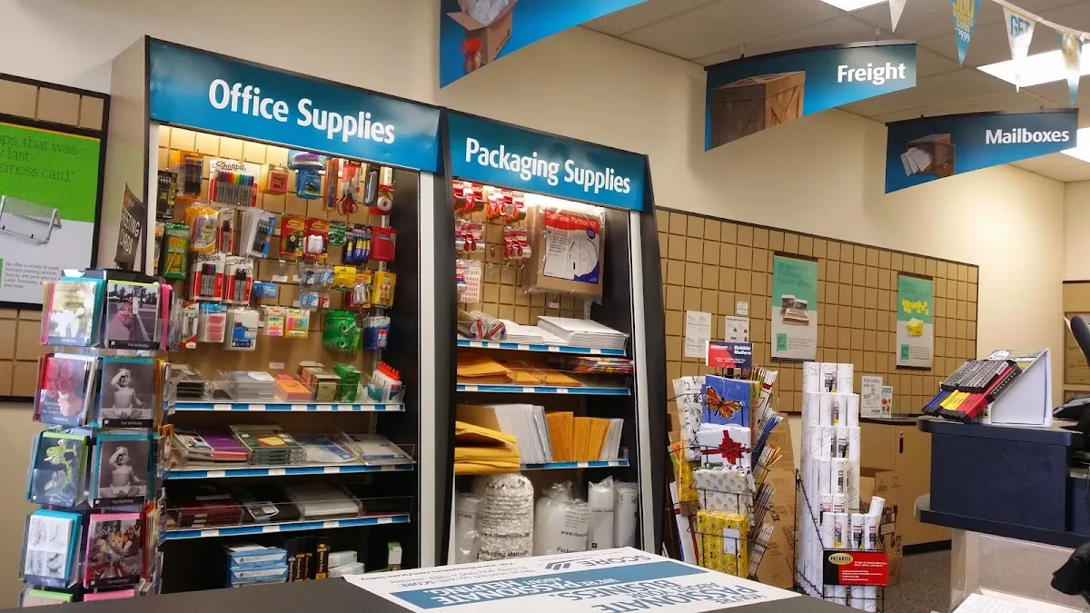 Store offering shipping, packaging, printing & other services, plus office supplies.