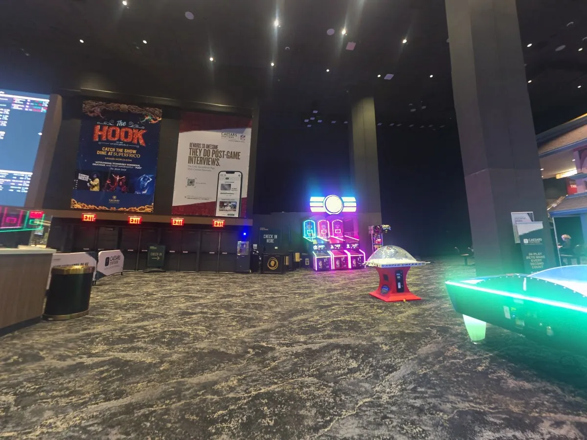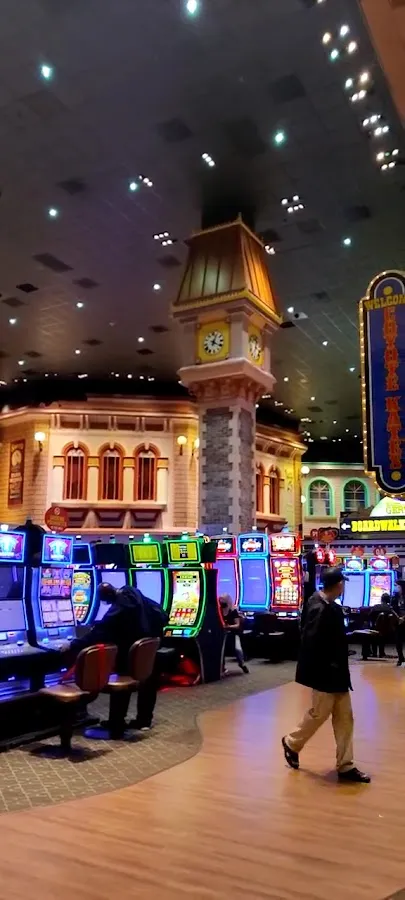 Casino with gaming tables, slot machines & a poker room at a large hotel resort.