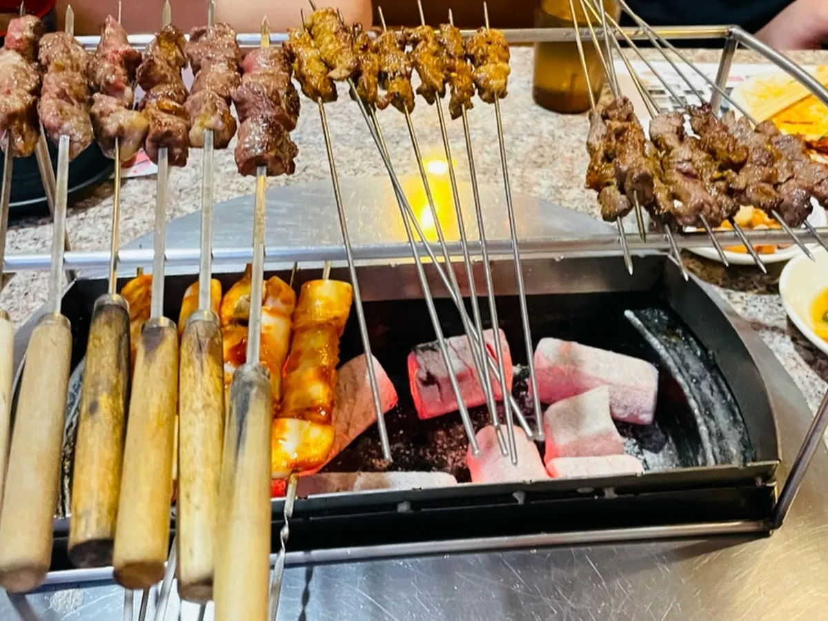 Laid-back eatery featuring tables with built-in grills for barbecue meat skewers, plus sides & beer.